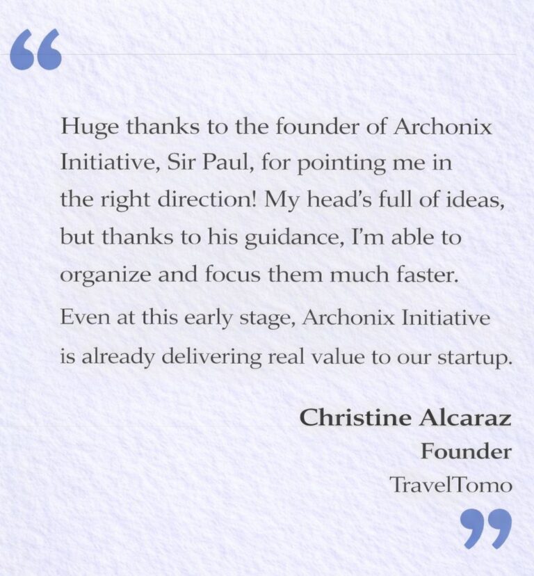 Sa ngayon, nagre-raise kami ng capital para ma-sustain ang aming operations habang patuloy kaming nagtatrabaho kasama ang mga startup na kasalukuyang naka-onboard sa Archonix Movement.